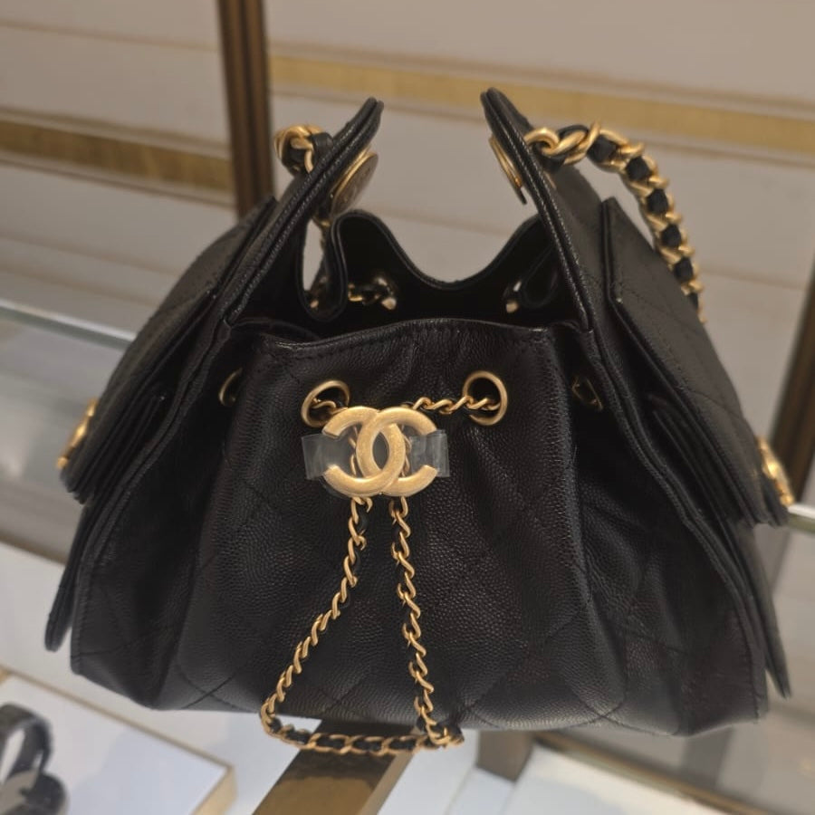 CHANEL MINI 25 BLACK CAVIAR GOLD CHAIN
